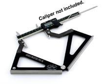 The concept of the ANGLE MASTER PRO 6i is straightforward trigonometry. Your 6" caliper becomes an adjustable hypotenuse of a triangle with two identical adjacent legs. Reading inches (.001" increments), there are 6,000 possible angle settings over a 90-degree quadrant. This provides accuracy exceeding one minute (5,400 minutes = 90 degrees). Using metric divisions, (.01 mm increments), there are 15,240 angle settings over a 90-degree quadrant. Either choice will provide accurate results previously attainable by much more expensive means, which typically are not portable.