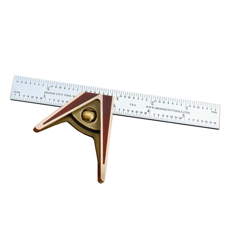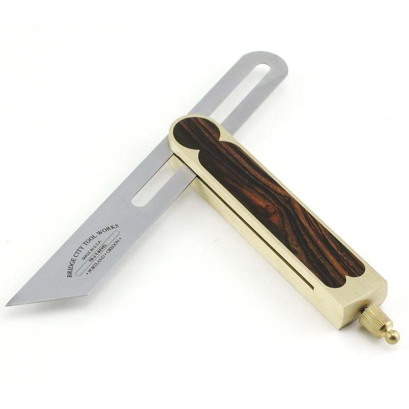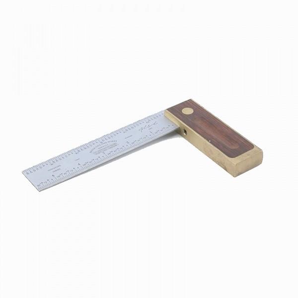 The locking mechanism is true and works almost effortlessly. For transferring angles, lightly tighten the blade, pick up your angle and then lock the blade in place. The tapered and knurled brass locking knob is easily gripped and will please you with its graceful appearance. This knob fits perfectly between the thumb and index finger – a short travel to tighten will have you on your way with confidence that the blade will stay put! The precisely ground 7" blade is machined from steel and subsequently hardened and satin-chromed for zero glare use.