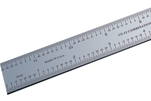 When setting up a saw and other woodworking machines, you need a rule that will read from right to left. Few woodworkers relish using a left to right ruler upside down for setting their table saw fence – the FR-1 is the perfect right-to-left reading rule. Flip the FR-1 180 degrees and your 12" left-to-right ruler is ready for use. This is incredibly handy and much more accurate than using a tape measure.The FR-1 also features a small, handy centering rule. Use this rule to find dead center on stock up to 5" in width without using any math. Align your stock so the same measurement is aligned with the two outside edges and the rule points to center.