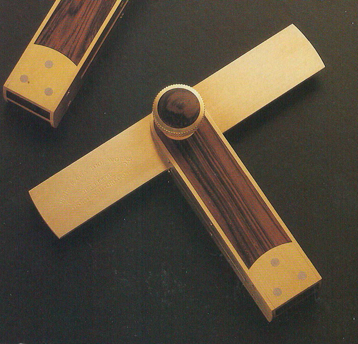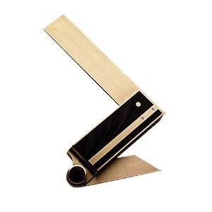 The feel of this tool in the hand is magnificent and the function is ever nicer. The handle is wrapped in 1/16" brass. The knob is large enough to get a good grip on and threads into a sealed, dust proof nut, yet it will never interfere with the use of the tool. The blade is bushed in the handle so there is metal to metal contact when secured. The blade stays locked where you want it -- insuring utmost accuracy during the scribing and layout process. The TB-1 is designed in the tradition of the true T-bevels of yesterday. The blade is infinitely adjustable over a full 360 degrees. This tool is for all of the angles not available in fixed reference squares.