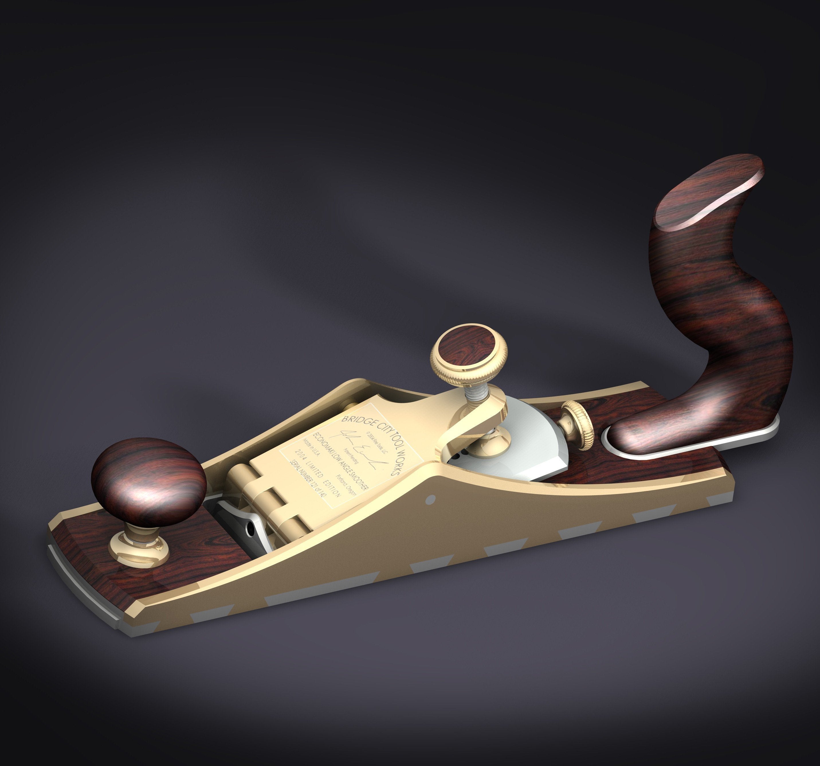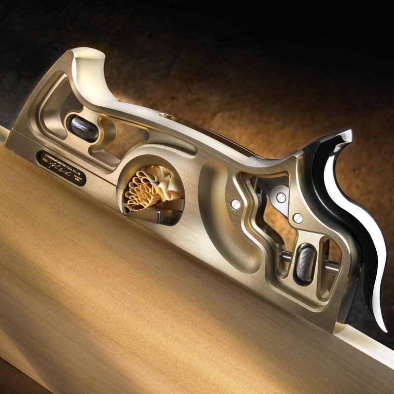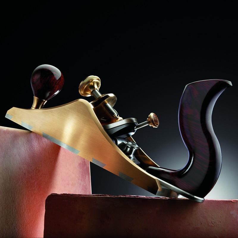Machined and polished from solid brass, this beautiful shoulder plane looks, feels and works like no other plane in American history—it is a stunning example of craftsmanship, a joy to hold and use, and very well may be the finest commemorative tool thus far. Unlike shoulder plane designs that share a European heritage, the CT-14 1-1/8" Foxtail Shoulder Plane was conceived with an unequaled passion for ergonomics. As the design process evolved, so did a new way of making, and using a shoulder plane.