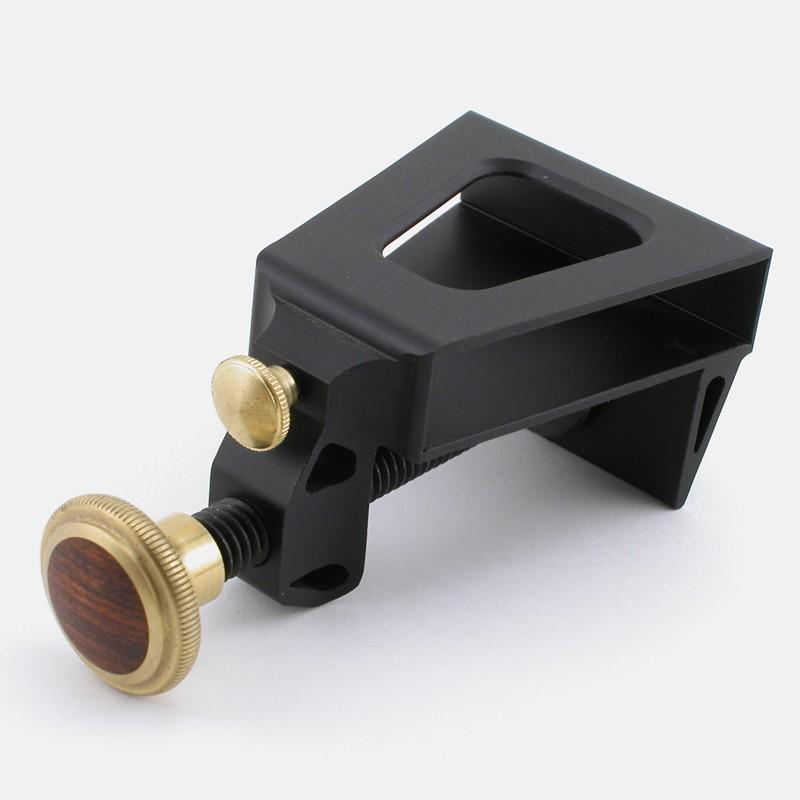 With the traditional “A-Frame” design that lets the user adjust the cutting edge by turning the thumbscrew in the back, our HG-1 Honing Guide is one of the most precise and easily adjustable Honing Guides on the market. Simply square the edge of the plane iron or chisel with the sliding "T-Square", extend the iron out to your sharpening stone, and tighten the clamp knob. You are now ready to fine tune the angle with the rear micro adjustment knob.