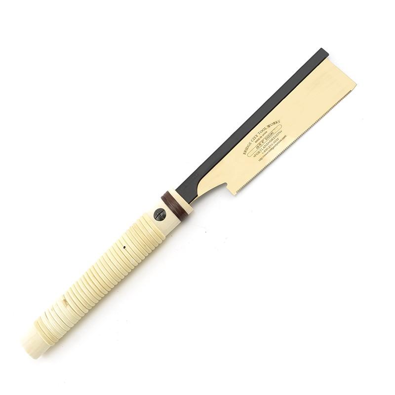 All of the Japanese saws made in Japan for Bridge City feature blades with a golden hue. This color appears during the heat treating process and is normally ground off to reveal the traditional silver color of steel. We insist that it not be ground off so you know the blades are properly tempered.