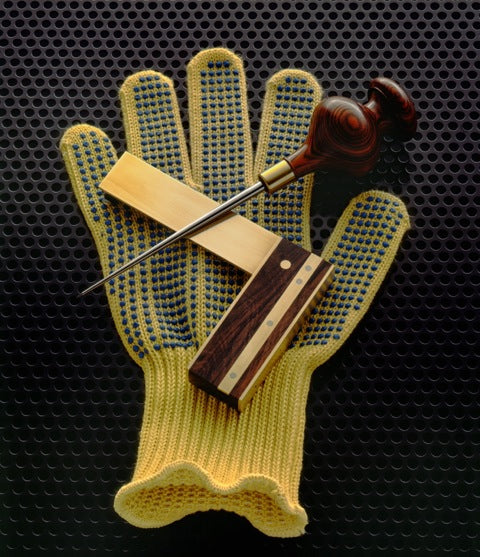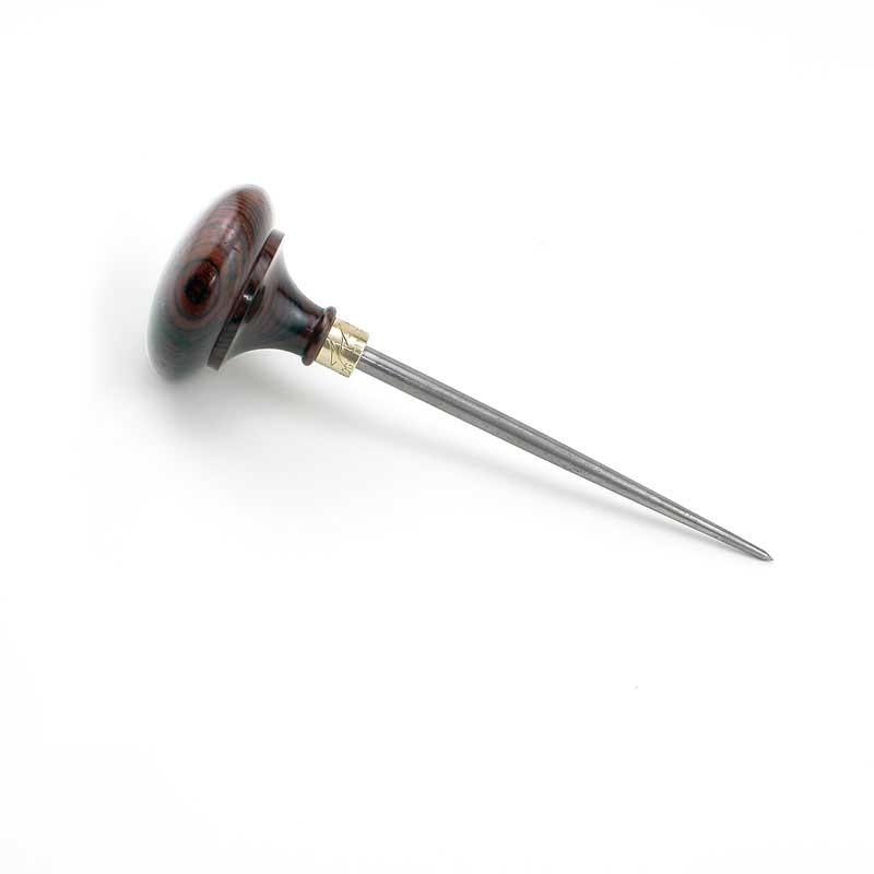 Each rosewood handle is flawlessly hand turned. The balance of this tool in your hand is unlike any you have ever experienced. The control of this awl, (somewhat like a conductor’s baton) allows you to lay down lines in the tightest situations; like making dovetails, mortise and tenons or tracing profiles. The 4-1/2" hardened steel blade is long and narrow, terminating in a very fine point.The SA-1 Scratch Awl is designed to complement its big brother, the SA-2. It is great for starting screw holes and making divots for brad point drills. The handle comes to rest in the palm of your hand, the point acting as an extension of your index finger. This immobilizes your wrist and allows you to transfer “weight” to the point. As a safety feature, the brass ferrule completely encapsulates the tang and directs all downward forces to the minor diameter of the handle.